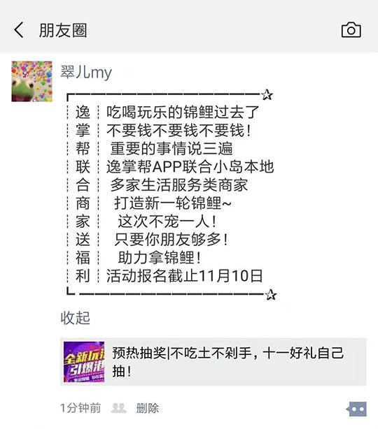 朋友圈轉(zhuǎn)發(fā)推文,再贈(zèng)送門店抽獎(jiǎng)1次